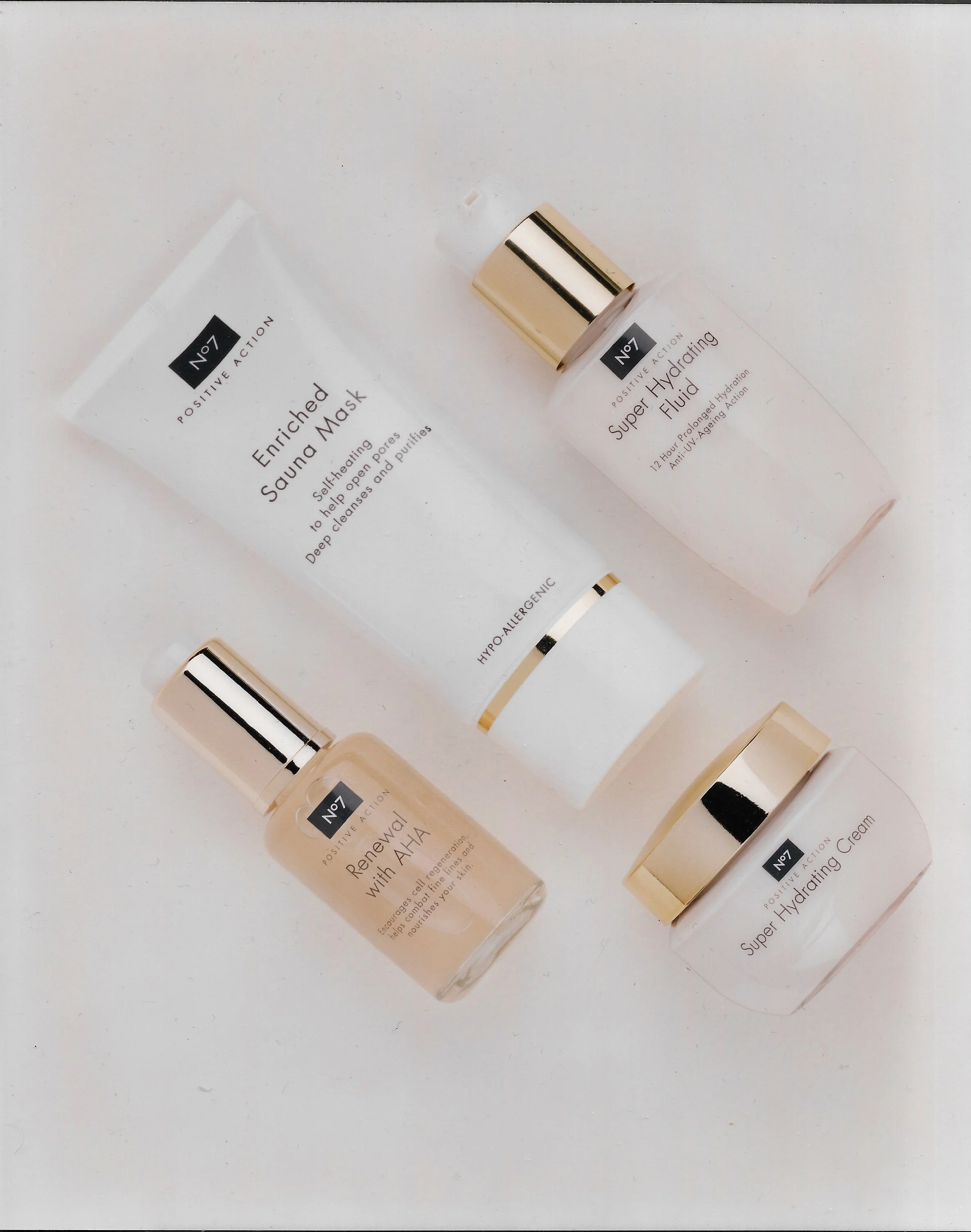 The No7 Colour collection included technically advanced formulations in a spectrum of beautiful colours including 30 new products, 100 stunning new shades and No 7 classic originals. The skincare range include a collection of scientifically advanced highly specialised Skincare, Positive Action, Daily, Bodycare, and Self-Tanning formulations.